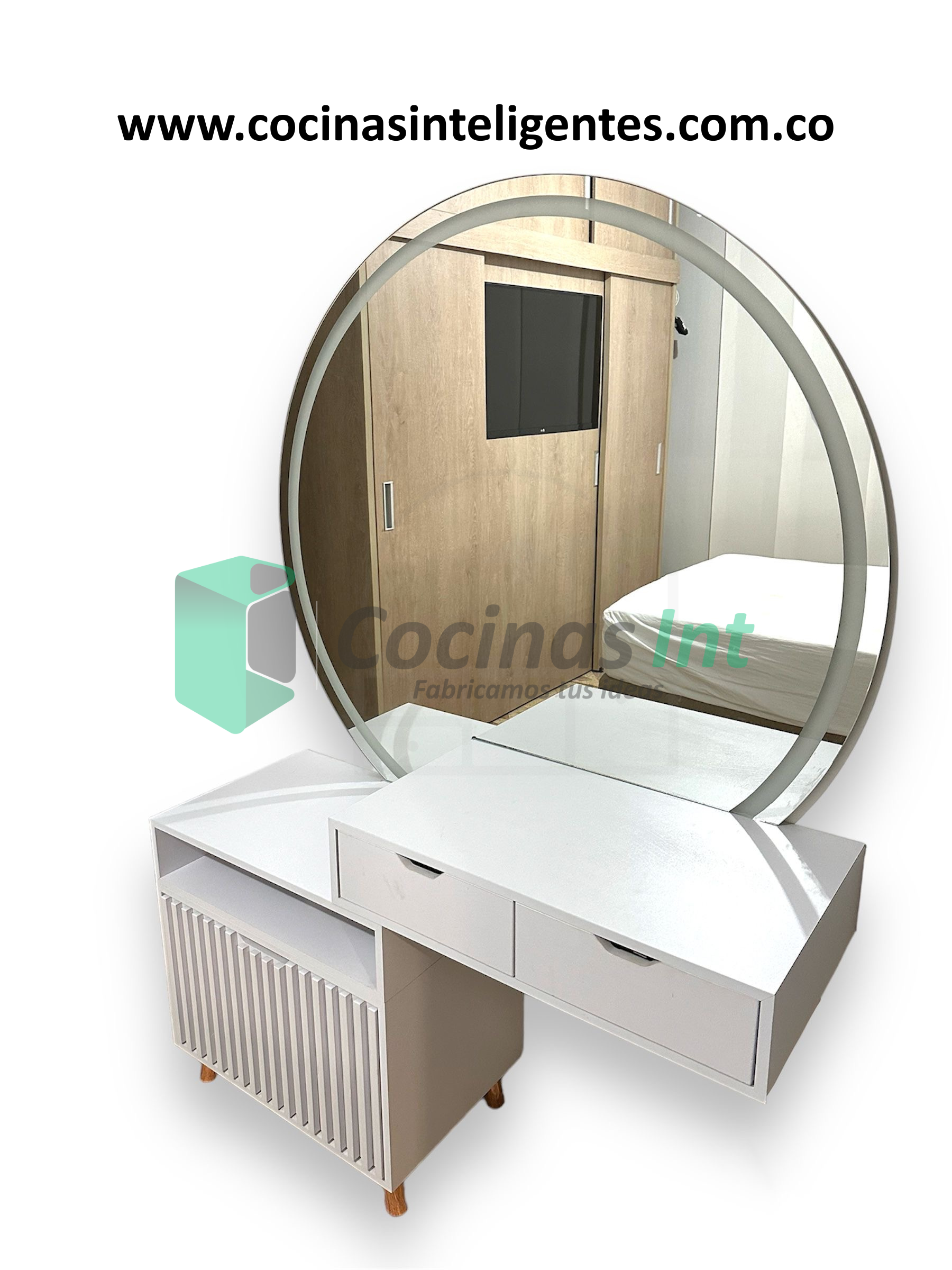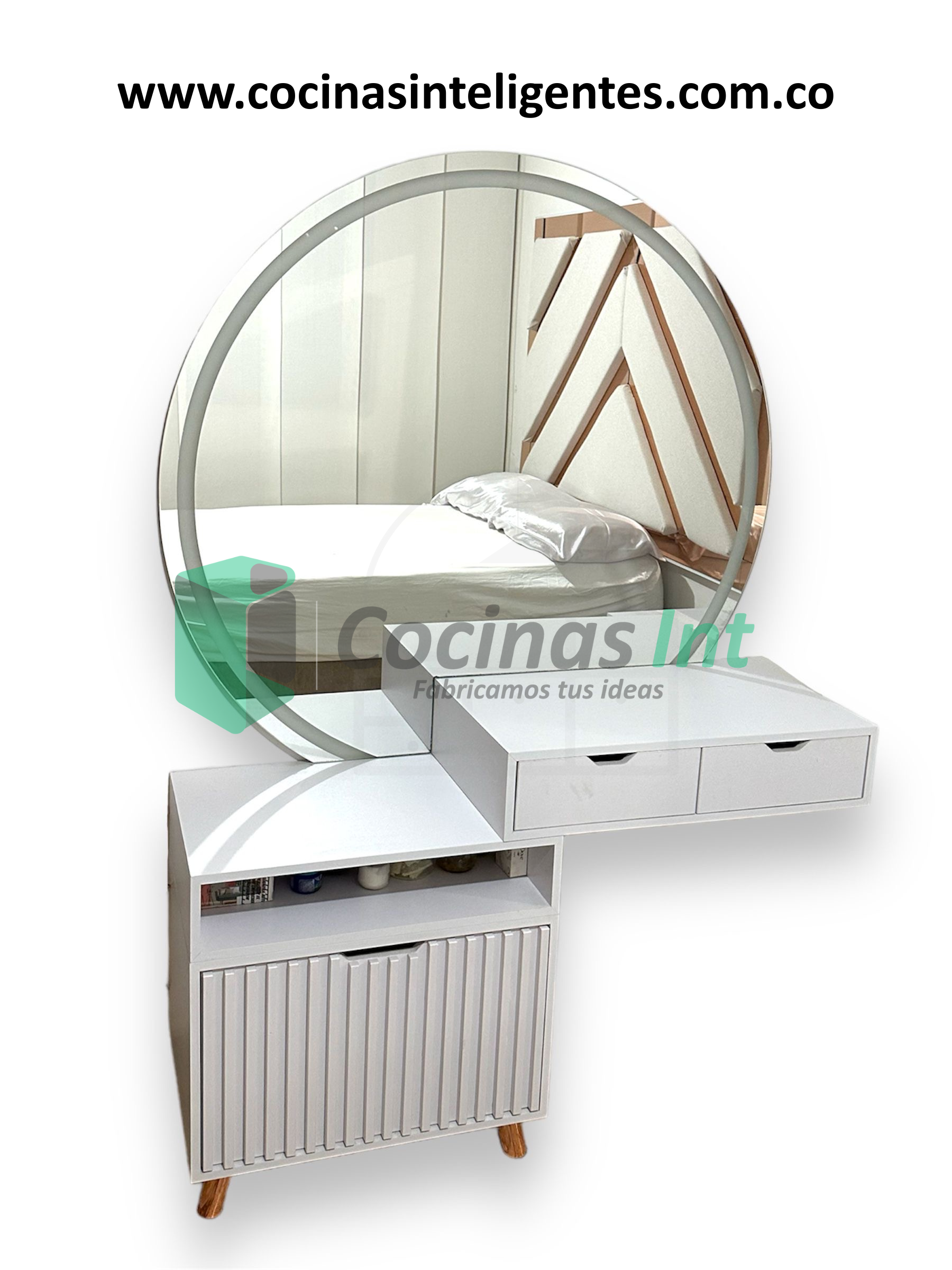 Este elegante tocador con espejo es el complemento perfecto para tu dormitorio o baño. Con su amplio espejo, podrás arreglarte y maquillarte con comodidad y estilo. Además, su acabado de alta calidad y su diseño moderno le darán un toque de elegancia a cualquier espacio. ¡Haz que cada día empiece con una imagen perfecta! (Valor aproximado, sujeto a medidas)